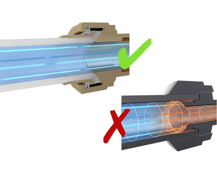 The JRG Sanipex cone grip union connection guarantees a secure, water-pocket-free connection at full flow